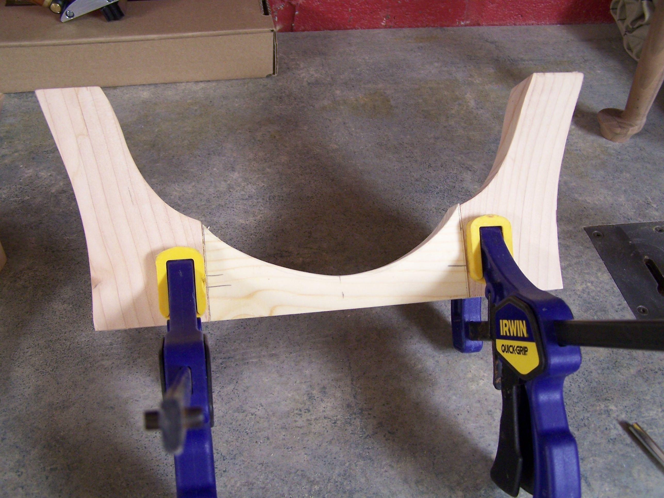 I glued the entire pediment together with a straight piece across the back and the half laps make for a sturdy piece. Once I have added further glue blocks and attached it to the case it will be very strong. So here is the first look of the simple case set upon the feet assembly.