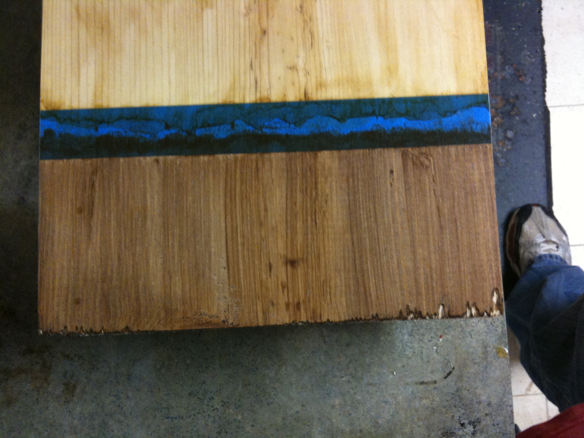 I wasn’t happy with the quantity of brown in this so I started over and went directly to Shellac. By combining Transtint concentrated dyes into a 1 pound cut of super blond Shellac I came up with this interesting color.