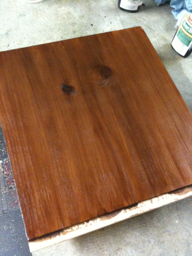 So I used some General Finishes Danish Teak oil based stain straight onto the pre treated Pine (using Charles Neil’s Blotch Control) to get a feel for that color as a base.