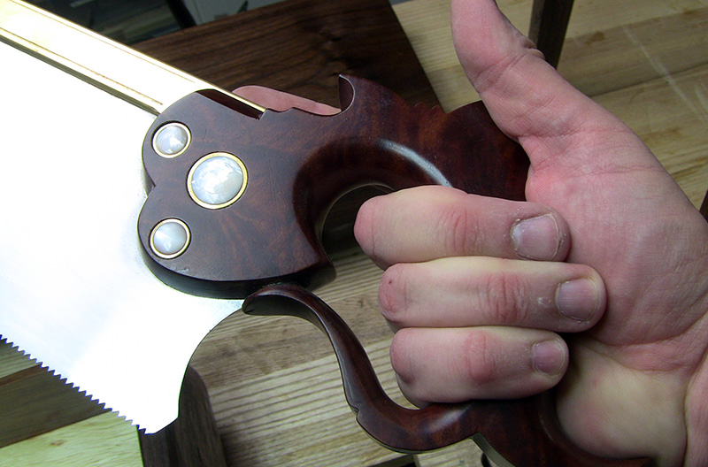 However this is where I had a little trouble. As I mentioned these saws were not made for me. The tenon saw was as close to perfect as it could be. The carcass saw felt a bit tight but the more I used it, the more I realized how effective it was to have that glove like fit. The dovetail saw handle was too small. The gentleman who bought these saws obviously has smaller hands. I’m certain this was a personal thing that would have been remedied were I the buyer of these saws. So while a slight negative in my experience, one that shouldn’t reflect on the overall experience. What it did illustrate was the fact that Ron is hand crafting these handles individually to match the user’s hand.