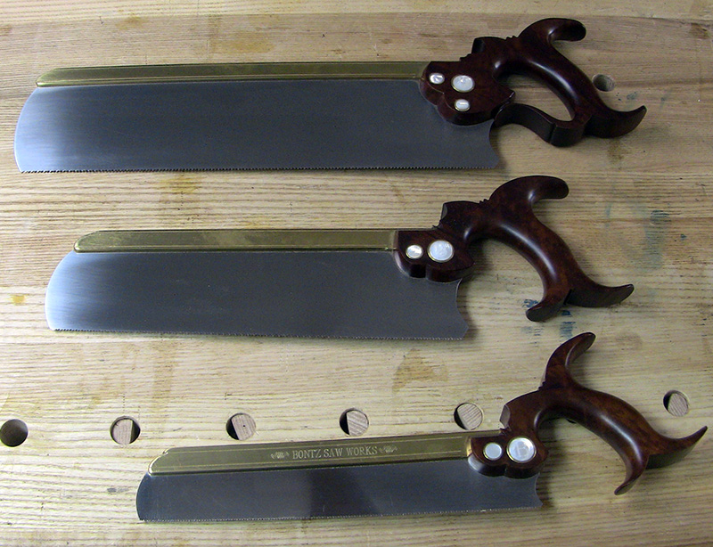 Over the last 4 months I have been testing out 3 news backsaws made by Ron Bontz of Bontz Saw Works. A friend of mine ordered these saws from Ron and offered to let me try them for a bit. So in the interest of full disclosure, I did not buy these saws and Ron Bontz did not even know I was using them. I have been in touch with Ron since then to ask some questions and tell him my thoughts. Unfortunately I will have to give these saws back. I have considered fleeing the country with them, but considering their owner is former Special Forces, I somehow think he would find me and hurt me. Normally I’m not a fan of tool reviews and I try very hard to only do them after I have had a substantial amount of time using the tool. In the last 4 months I have put away my other dovetail, carcass, and tenon saws and used these exclusively. I have lost count of the number of joints I have cut and boards dimensioned but let’s just say its a bunch. In short, my experience is a mixed bag, but not for the reasons you might think. Hang tight and I’ll explain.