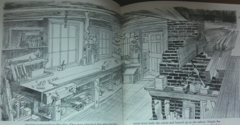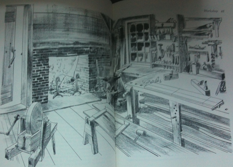 In today’s society it is next to impossible to live this way. No matter where you go or how “off the grid” you get it seems that you will need to pay someone something to live. So I can only dream about this time and enjoy the amazing illustrations that Mr. Watson provides us in this great book. Of particular note to my hand tool junkies out there is this 4 page spread of a typical Countryman shop.