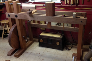 Not being an engineer, I can’t help but wonder what I’m missing. Am I trying to impose modern machinery ideals onto a DaVinci design? I know that if I balance the wheel by removing that extra bit of stock I won’t be able to put it back on. Realistically it may not even make a difference in the perceived effort on my part while turning and the wheel will still be at least 60 lbs.
