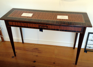 But all things are cyclical and what was old is now new again. Retro has been in vogue so often that it is hard to say when the incarnation of what is now retro actually is. Each revival adds its own spin that posterity will mark as a separate style like an endless software release of new versions of the same application. Such is the case for some of the new furniture I am seeing in galleries and exhibitions. The lines seem to be the same but ornamentation is sneaking back in the form of wood grain. It seems that our global marketplace has opened furniture makers up to the entire palette of wood and like kids in a candy shop we are consuming anything we can get our hands on. The problem with this is I’m not seeing the restraint that defines good design. Just because you have hundreds of wood species at your fingertips does that mean you need to incorporate all of them into your table or chair?