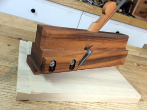 Enter the sliding dovetail plane. It is the definition of sexy tool porn (that’s for you Megan). It’s a thing of beauty full of esoteric mystery capable of producing perfectly dimensioned dovetails across any length of board. It simplifies what can be a daunting joint…