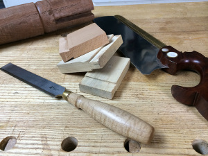 In fact, once I had set up my dovetail plane to create a perfect tail on a 3/4″ thick board, I created a set up block that would allow me to quickly set it up again in the future. Again this reminds me of when I still have a router table. At least I didn’t make my set up block out of UHMW plastic. I will admit though that with this set up block I can not only set up my plane quickly but I can count on the resulting tail to look just like the set up block. This means I can transfer the set up block’s shape to my pin board and as long as I saw to the lines I will get a great fit. That’s just like cutting regular dovetails.