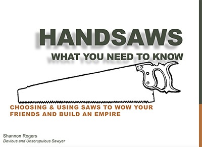 This was a 2 hour class and in reality I came in at about 2 hours and 15 minutes with all the questions at the end. I edited most of that out and still the above video is about 2 hours long. So watch at your own risk! But I do hope that you will find some useful information about hand saws and an in depth look at tooth geometry and what it can mean to you when it comes to choosing which saws you want and which saws you need.