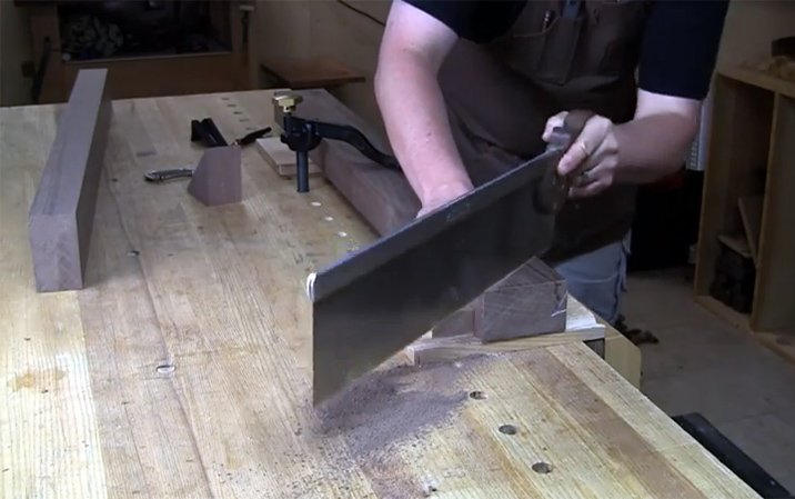 After the angles and stuff are set it just comes down to an exercise in sawing to the line. With beefy joints like this sawing right on your line is key or you will spend a lot of time with a chisel trying to finesse a fit with tough end grain and invariably that chisel work will result in a loose fit or gaps in your joints. So take your time with your saw cuts and get them right.
