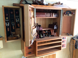 Then I finally hang my tool cabinet (final project of Hand Tool School Semester 1) in its rightful place using the mother of all french cleats. The elements are coming together and I’m really liking it!