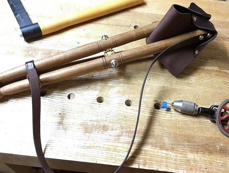 This project is a fun one because it involves very little stock and can be completed in a few hours, even when turning on a spring pole lathe! I should really call this stool “I get by with a little help from my friends” because so much of it is outsourced. All is did was rive and turn 3 legs then put it together with specialized hardware and a stunning leather seat that were both purchased from others.