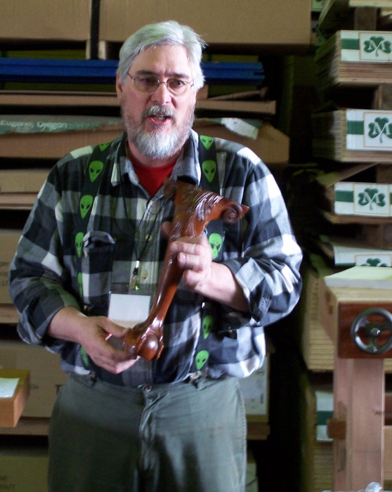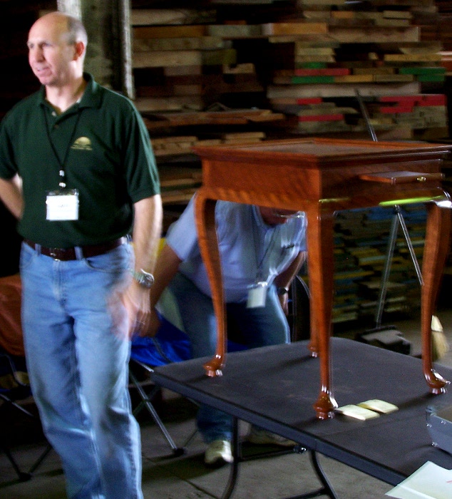 From there we settled in to the warehouse surrounded by Mahogany, Wenge, and plywood to hear Don Williams from the Smithsonian speak about 18th century finishing. Don is always a pleasure to listen to and one of those speakers who often dispel common misconceptions about woodworking. Today it was French polishing and waxed shellac. First, the French didn’t use shellac but stuck with more of a spit polish using water and wax. The English were the ones to use shellac. The process is still very much the same but now you can be the obnoxious one at parties who corrects everyone when the topic of French polishing comes up. Don’t expect to get invited back to that party however.