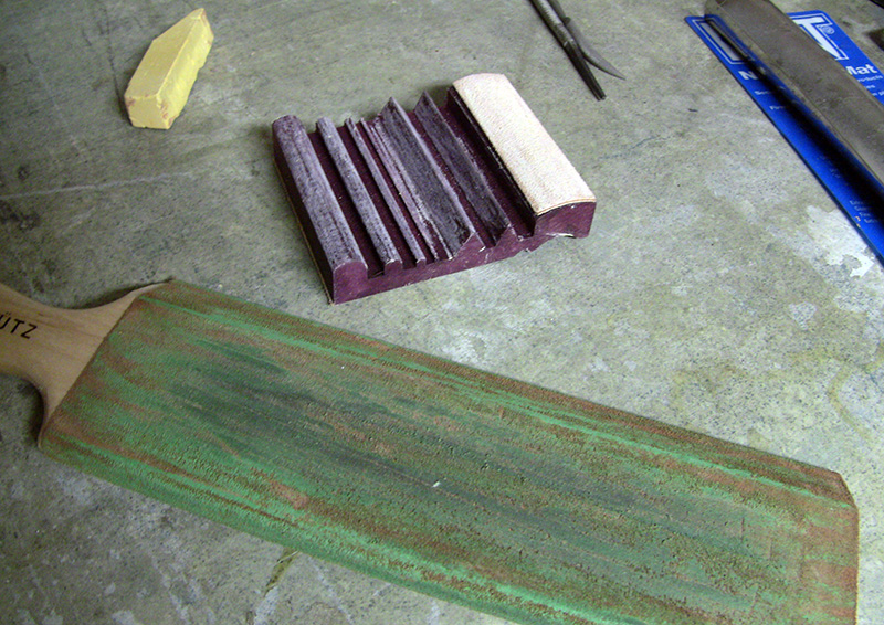 Sharpening StropsWhen it comes to moulding plane irons and carving chisels my philosophy is to not sharpen. I prefer only to hone. In both instances my cutting edges don’t encounter a lot of abuse so I’m not having to grind out a nick in the edge or re-shape a bevel angle. My moulding planes only get used after the bulk of the wood has been removed by the rabbet plane and a tough day for my carving chisels is being tapped lightly by a lightweight mallet through a forgiving wood like Mahogany, Walnut, or Basswood. So these tools usually only see the strop. I have a Butz bench strop that handles just about everything and recently got one of those Flexcut Slip Strop for my carving chisels. Really this block is mostly for my V tools since I strop the gouges on the Butz strop. Constant vigilance is the watchword here (and a Mad Eye Moody catch phrase). You never want your tools to get so dull that a strop won’t do the job. However after a while stropping can round over a cutting edge. This effect is usually called “dubbing” and it is caused by the somewhat flexible nature of the leather. AS you press and iron into the leather it moulds around the edge and over time the iron takes on the rounded shape. So at some point, you need a coarser solution to reshape the cutting edge.
