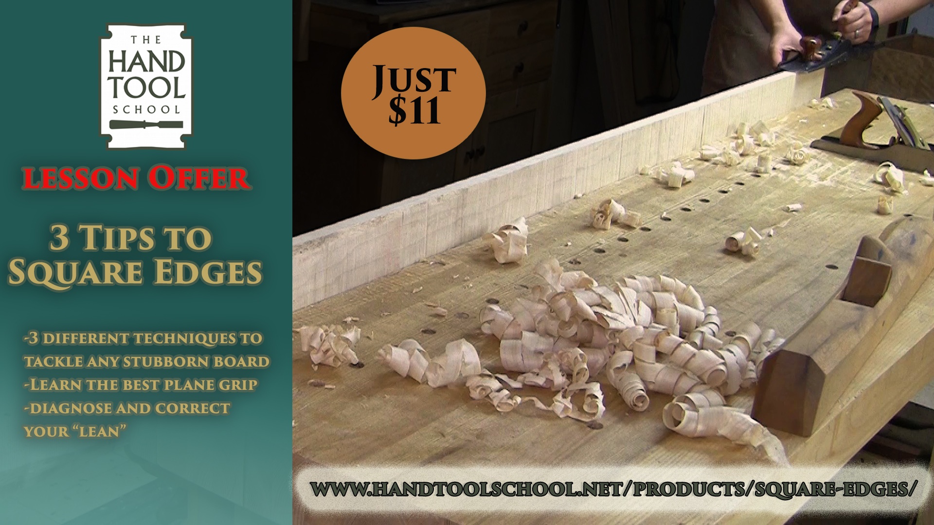 There is only so much I can cover and still take questions in these live broadcasts, so in an effort to cover some more edge squaring tips, I took a live session on this very topic from my Hand Tool School Apprenticeship and edited it a bit and released the video as a stand alone product that can be purchased over on the school site (or by clicking the image)