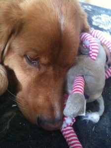 ***Update: the intestinal blockage was caused by poly-fil from one of Alex’s toys.  Much like the one pictured above.  If you give your dog these toys make sure they are not pulling out the stuffing, or better yet avoid them all together.  There are some great toys on the market that avoid stuffing all together and you can bet this is what we will have in our house from now on***