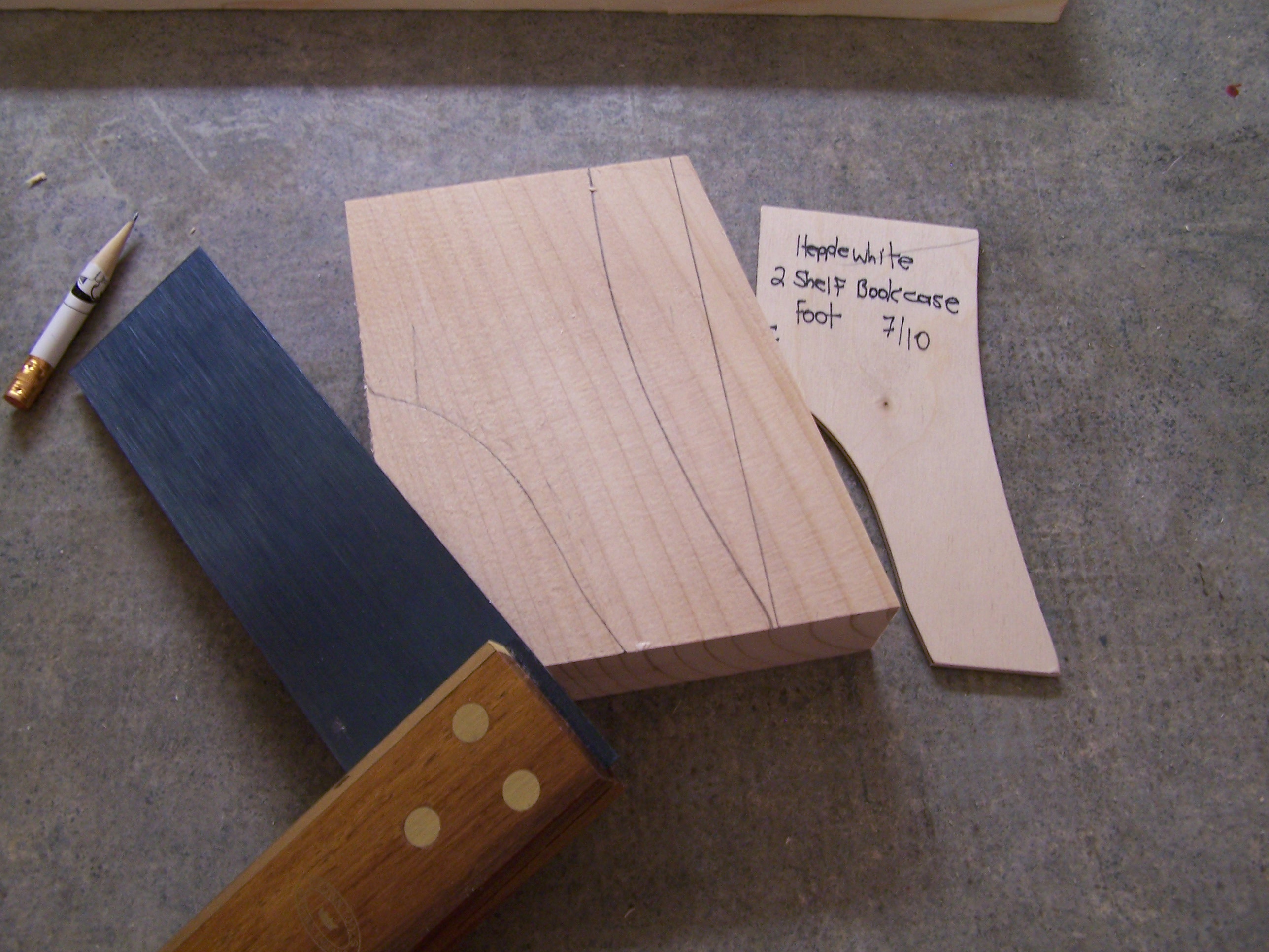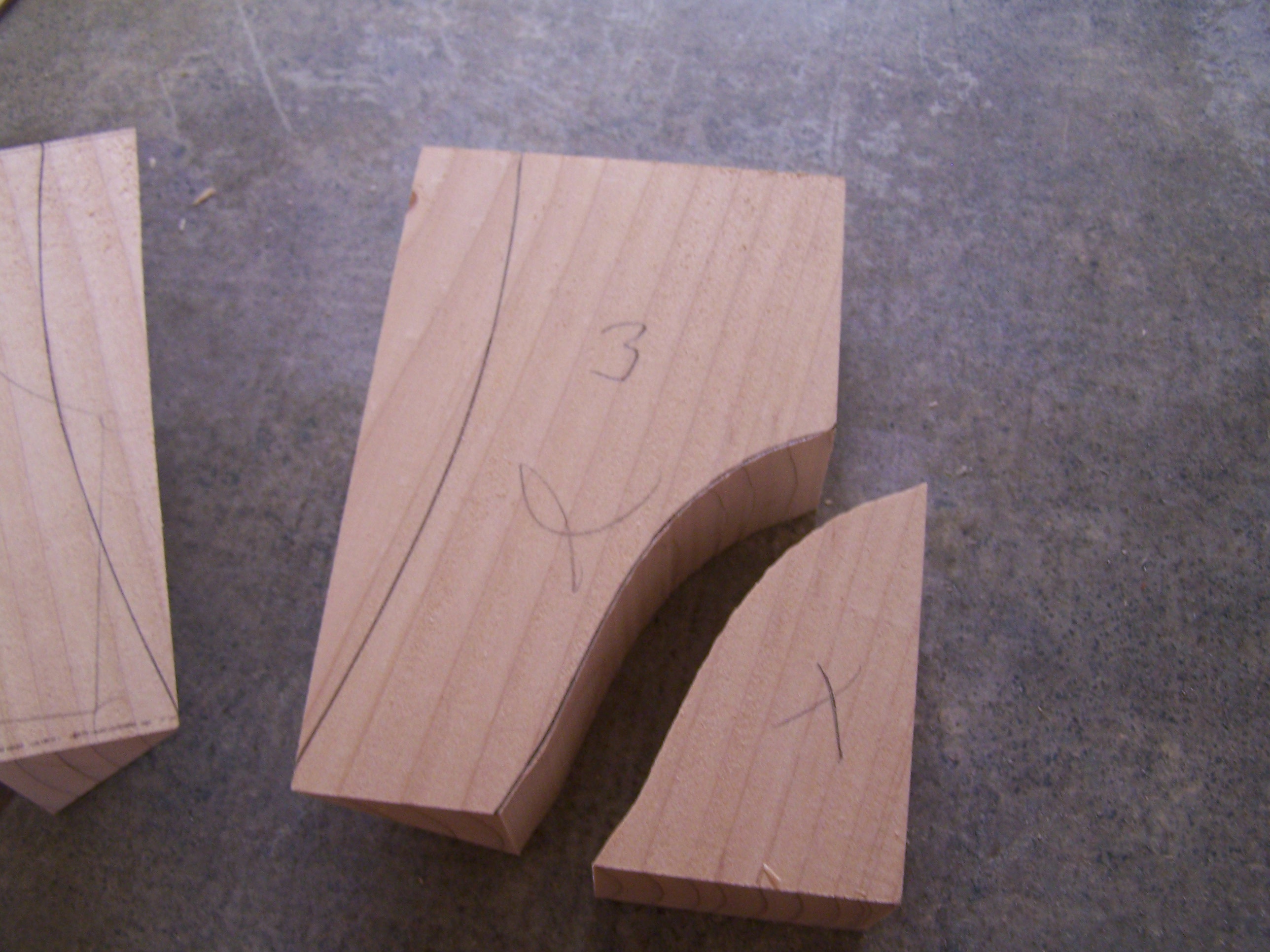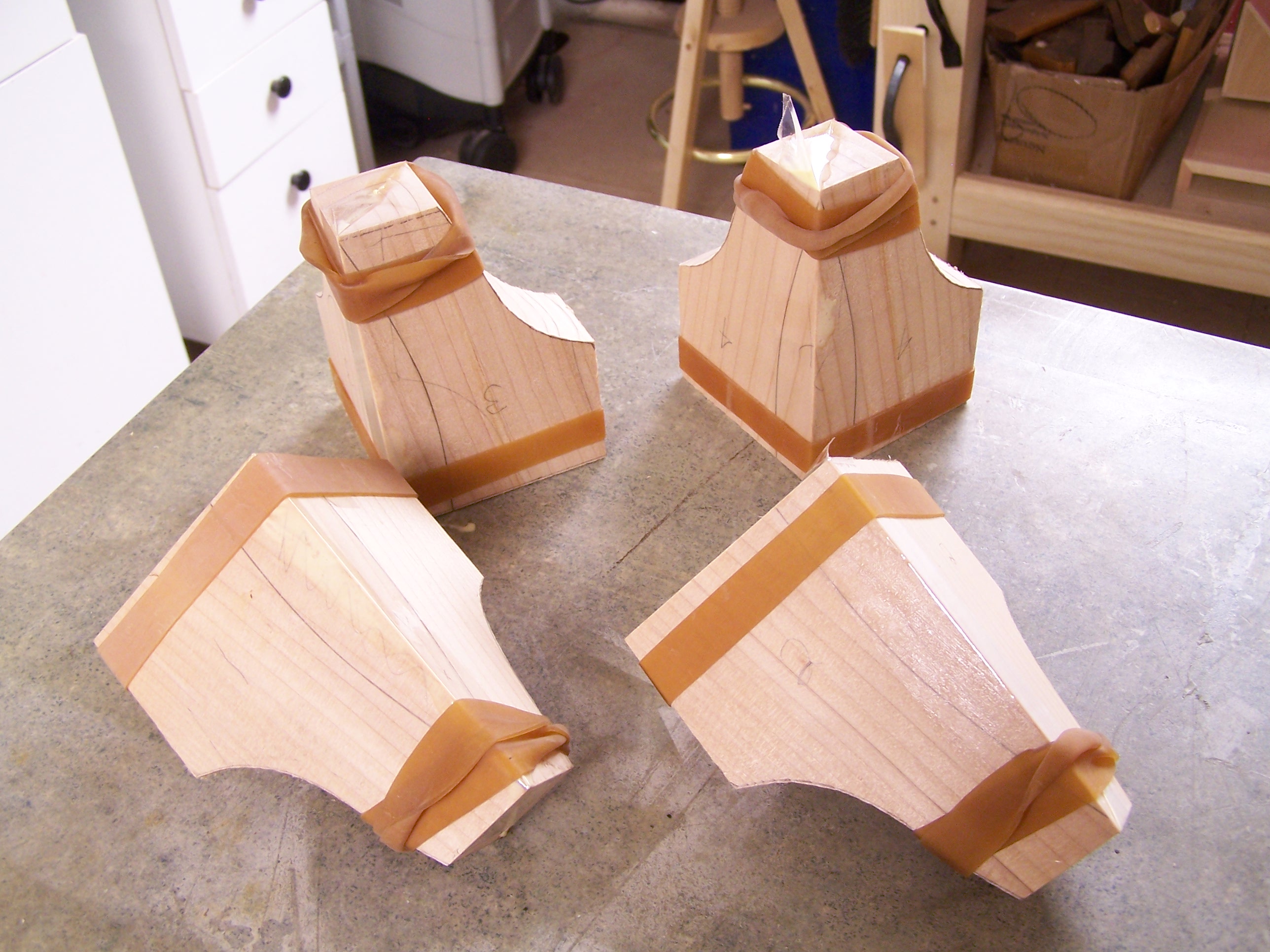 I’m about ready to glue these into bracket feet, but first I have to cut the inside profile of the foot because I won’t be able to get to it easily after the glue up.