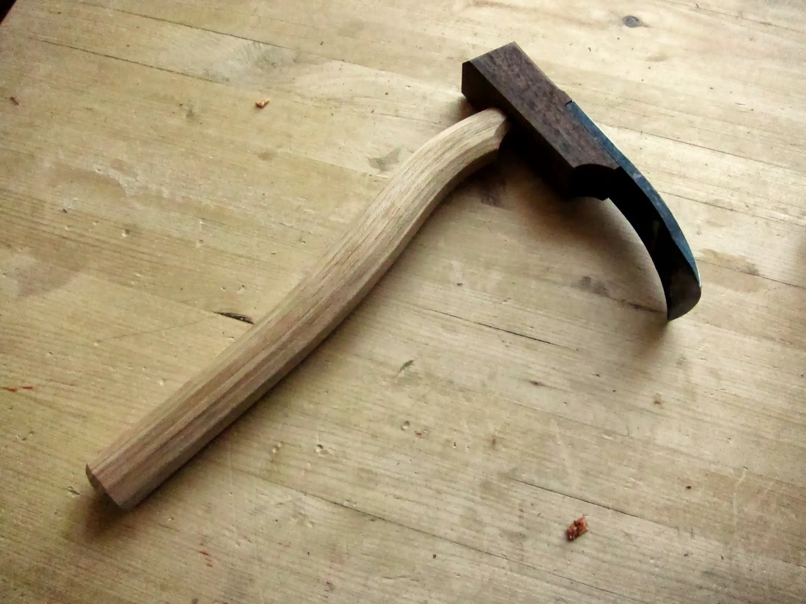 Tim Manney AdzeI have already raved about Peter Galbert‘s influence on my WIA experience but if you can believe it, his booth in the marketplace made it even better. Peter and a few of his friends have made it their mission to start creating dedicated tools for chair makers. Peter said it in his seminars that chair makers have too long just made do with tools from other trades. This booth was home to the now famous DrawSharp and the time tested Galbert Caliper. I have owned and used the caliper for probably 5 years now and I placed my order for the DrawSharp at the show (they were sold out faster than San Diego ComicCon tickets). I also own one of Peter’s Travishers and used it to hollow the seat on my last Windsor chair. That was a revelation to use and those were on display and in use in the booth. Tim Manney was there showing off his reamers which takes an age old tool and integrates some stupid simple enhancements to make it simply a joy to use. Things like a straight shaft so you don’t have to offset your bevel gauge from the resultant angle to half the taper of the reamer. This is a perfect example of how chair makers have “made do” and how Peter and his friends are changing that. What really got me excited was Tim’s version of a new adze. At first glance this looks paleolithic but watching it work was very impressive. Really any tool in the hands of a talented craftsman is impressive but the real epiphany was when I picked it up and made some chips myself. Tim and Peter has worked together to precisely shape the handle and angle of the blade to all but eliminate the learning curve on using this tool. It works so naturally with your body’s natural movement that within minutes I was “following the chip” across the board and into the hollow of a seat. Needless to say I added my name to the waiting list on this tool. I expect some really innovative things to come out of this tool makers “cooperative” in the next few years.