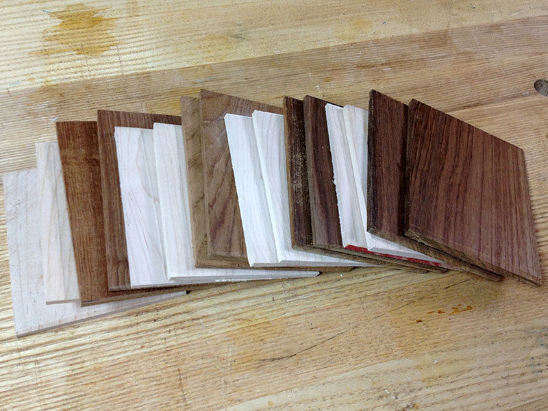 I just finished cutting and fitting 12 mortise and tenon joints on my latest pole lathe and I’m left with this deck of cards of Maple and Teak. Anybody have some useful things they do with leftover tenon cheeks? Please leave a comment below and share it.