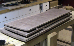 I think I have had my Roubo style frame saw now for about 6 months. (See it in action here)I have been playing with is and resawing everything from scraps to actual project parts. I have sawn out veneer as thin as 1/8″ and bisected 8/4 and 12/4 boards on scraps and even actual project parts. There was something of a learning curve to get used to the weight of the saw and how to guide it with the 2″ wide blade and that curve was flattened a bit when I added a 4″ wide blade from Blackburn Tools. I am extremely happy with this resawing frame saw and still am surprised at the attitude of my esteemed colleague Adam Cherubini over this saw. Mine works great. Maybe it took some practice and tweaking of the set to get it humming along but it works great.