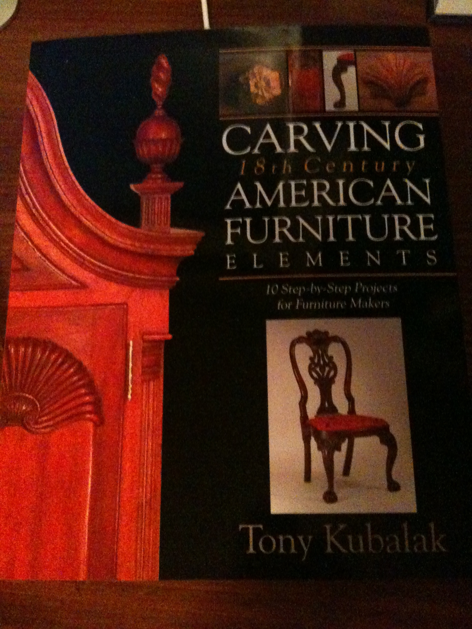 It is no secret that I am a huge fan of the Queen Anne style of furniture. Chippendale has always been attractive as well but the ornamental carving details can be a bit intimidating. Every time I have taken the plunge into carving I have been excited to learn that it really isn’t all that hard and with the proper layout and carving tools, it can be closer to paint by numbers than the brain bender I think it is at the outset. That’s not to say all carving is this way as some of the carved in the round details, webbing, and basket weave common on the bonnet tops of secretaries is definitely more art than layout. Tony Kubalak’s new book very plainly lays out the essential elements of the more high style Queen Anne and the beginnings of the Chippendale period. American furniture never achieved the same level of detail as it’s British counterparts so Tony can cover most of the carved elements that we see in the furniture on this side of the pond. He starts with the cabriole leg which although not a carved element, it is the canvas on which so much carving occurs. He then works his way into ball and claw feet, knee carvings, fans, acanthus leaves, and Newport concave and convex shells. I’ll be honest when I say that a lot of this information can be found on the Internet in a variety of places, but the full color photos and concise instruction make this book a great addition to your library. Many times the carving step by step instructions I have found read a bit like stereo instructions and I am left guessing. I went through this recently with my ball & claw experiment.
